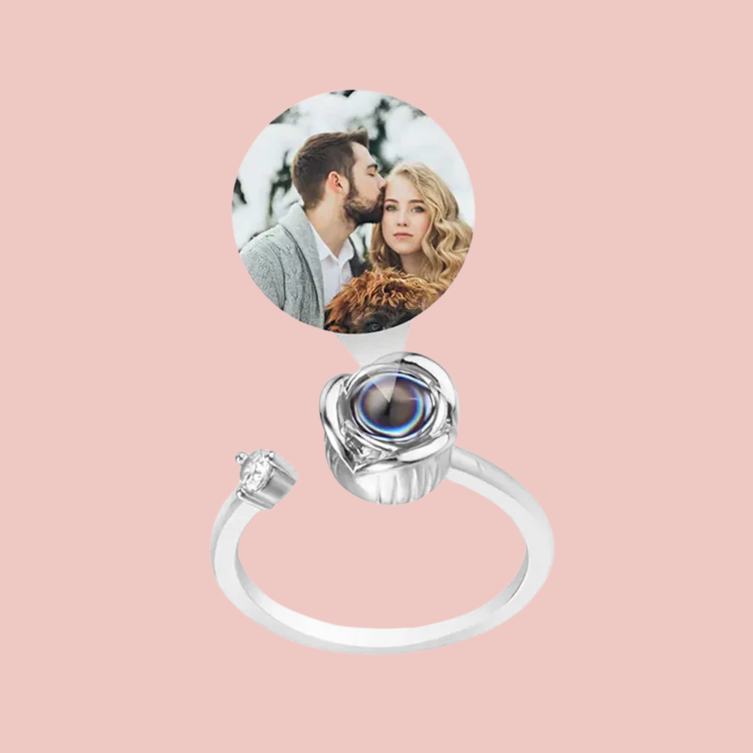 Une bague personnalisée capable de projeter la photo de votre choix en lumière. Un bijou qui ne brille pas seulement par son éclat, mais par l’émotion qu’il fait naître.